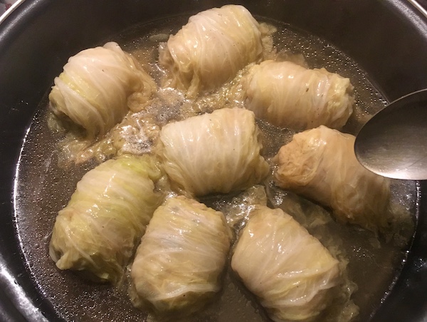 - In una pentola disporre gli involtini e versare l’acqua o il brodo (si può utilizzare l’acqua di ammollo di funghi). Cuocere a fuoco medio con il coperhio per circa 20 minuti