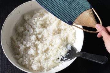 Per preparare il sushi, è necessario condire il riso bollito con un condimento base di aceto chiamato...